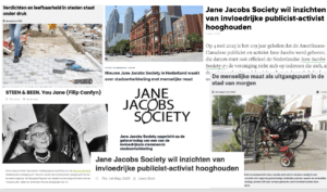 De oprichting van de Jane Jacobs Society ging gepaard met een ronkend persbericht aan een brede mediadoelgroep. Met succes, want we hebben flink wat aandacht